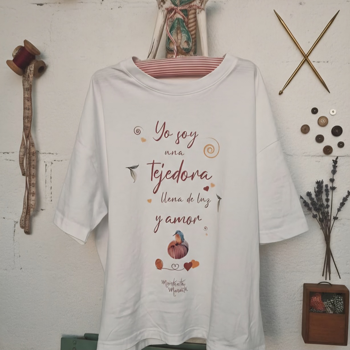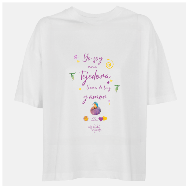 Es cómoda, es bonita y tiene ese mensaje que te recuerda quién eres cada vez que te la pones. Porque sí, eres una tejedora llena de luz y amor… y que nada ni nadie apague esa luz.