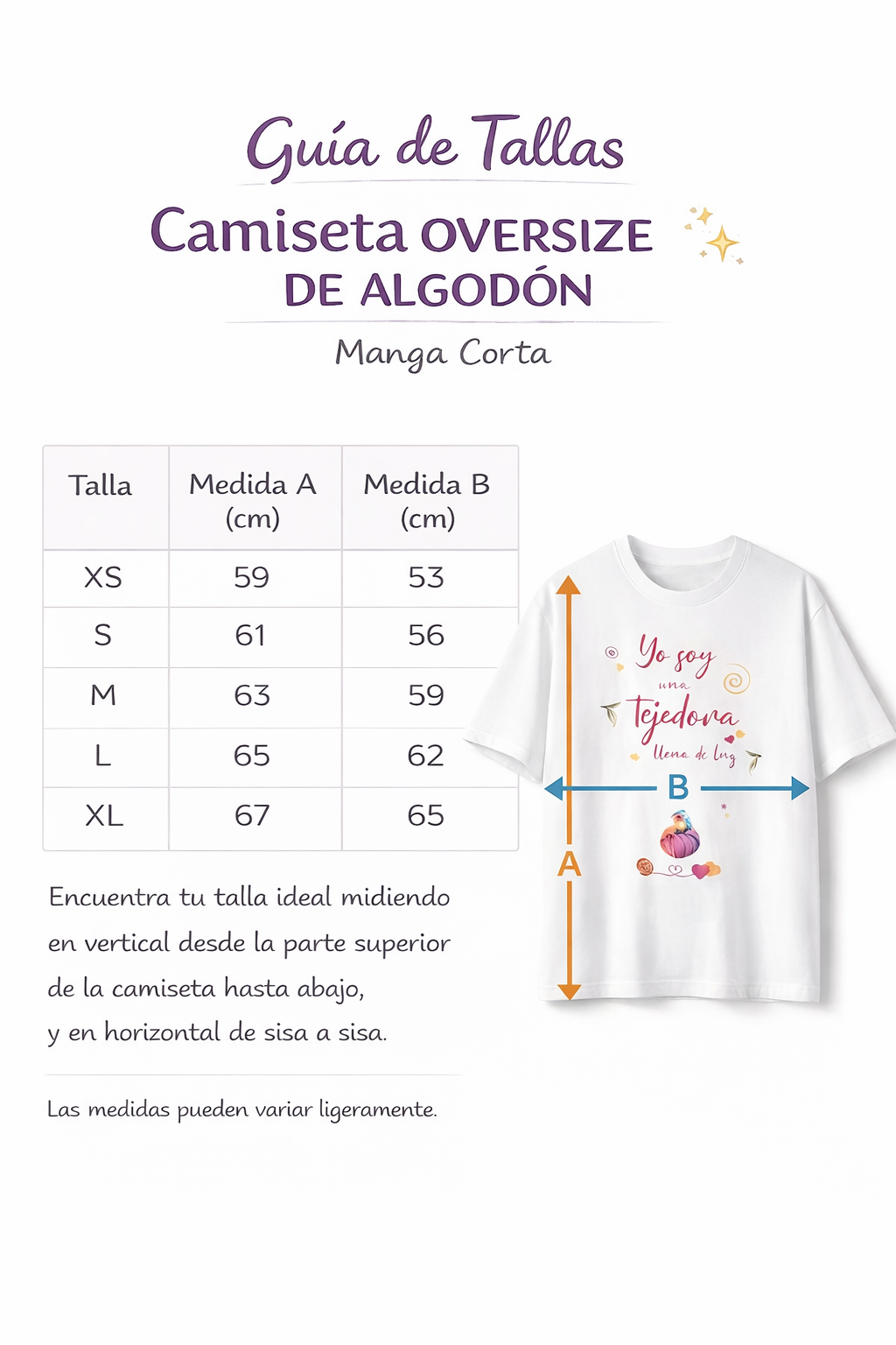 Por eso es importante revisar bien la guía de tallas antes de finalizar tu compra. Si tienes dudas, escríbeme y te ayudo encantada 💜