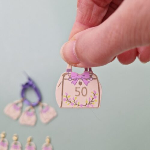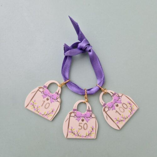 Los números 10, 50 y 100 llevan un diseño especial en forma de bolsito romántico, inspirado en los antiguos bolsos de costura donde se guardaban hilos, agujas y pequeños secretos creativos.