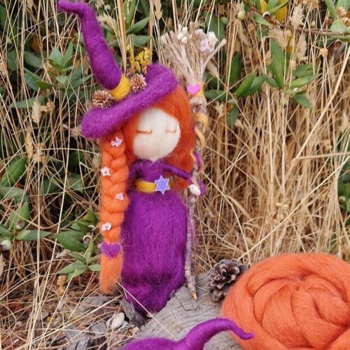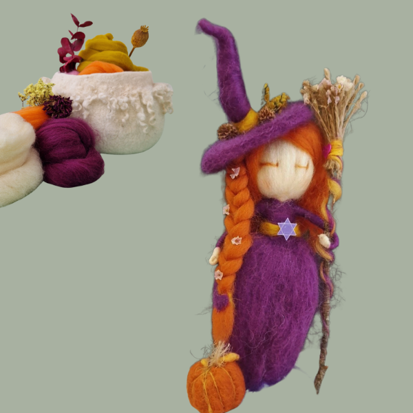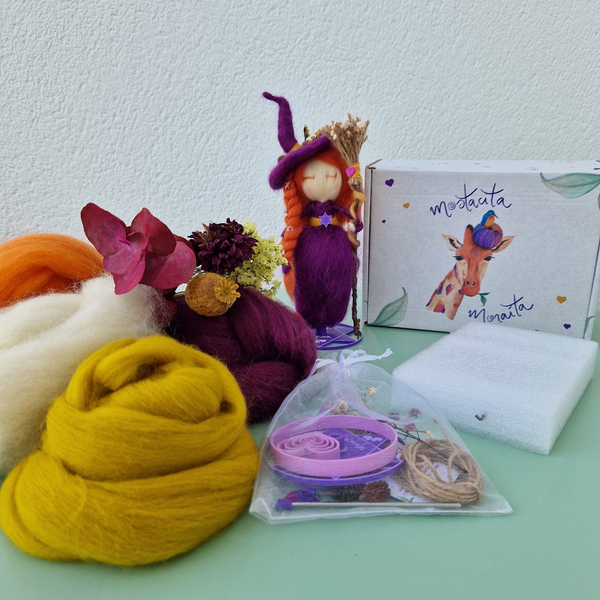 Este kit nace para reconectar con esa energía creativa, intuitiva y femenina que todas y todos llevamos dentro. A través de la técnica del fieltrado en seco (needle felting), darás vida a una brujita encantada llena de simbolismo y a todos sus accesorios: calabaza, sombrero puntiagudo y escobita.