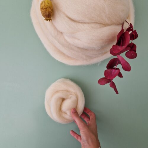 Lana cardada europea certificada Oeko-Tex®, teñida sin sustancias químicas y cuidadosamente lavada y peinada en mecha larga.