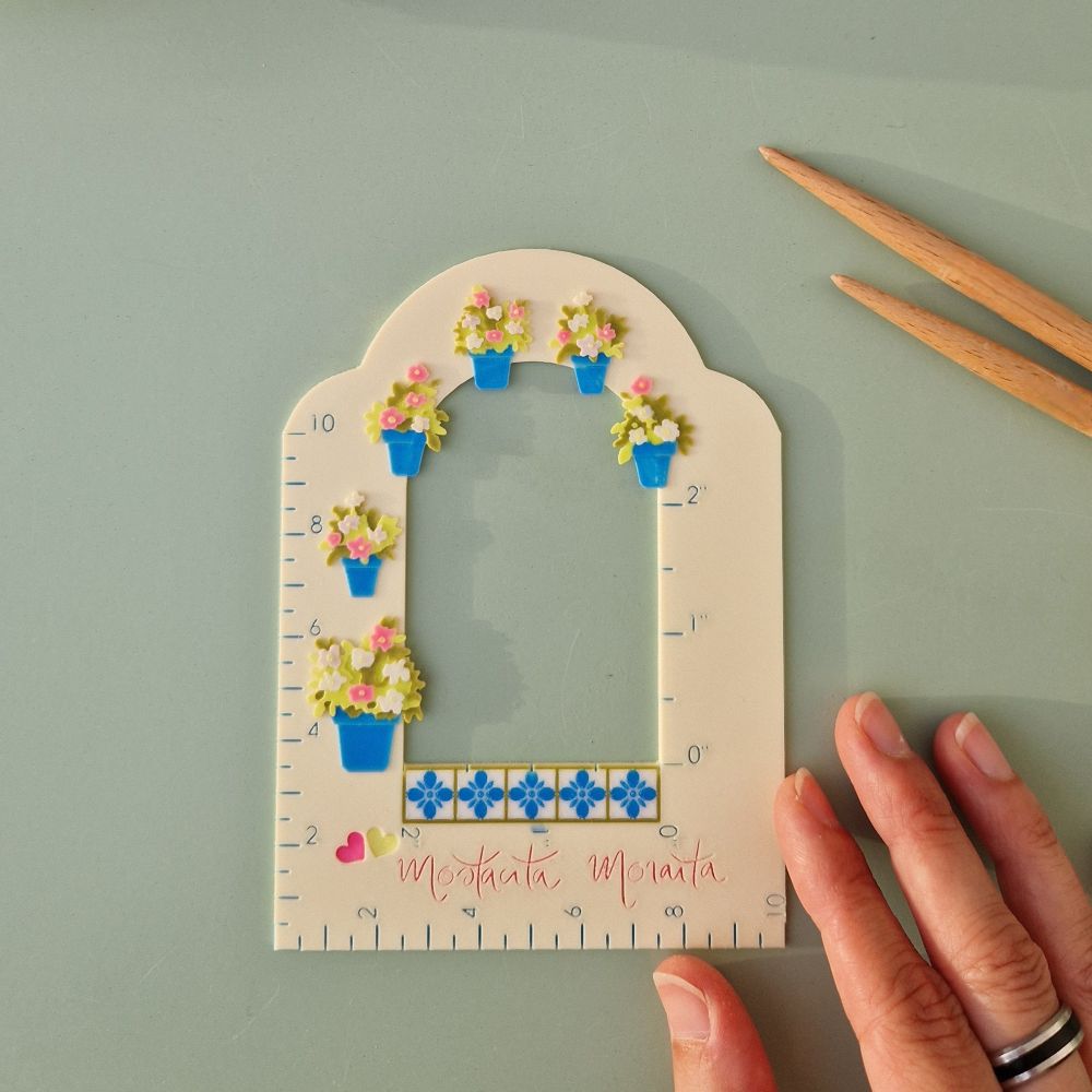 Este medidor de muestras nace del encanto de los patios cordobeses: sus arcos blancos, las macetas azules rebosantes de flores, sus carcaterísticos azulejos y esa sensación de calma y belleza que solo se encuentra en los lugares creados con amor.