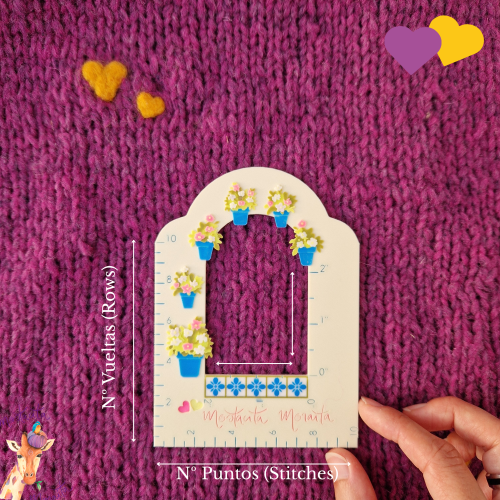 La base inferior mide 10 cm y sirve para contar los puntos de tu labor (stiches).